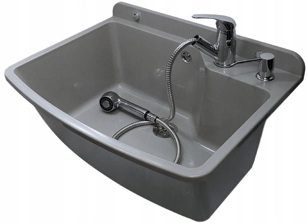 - zlew Komora gospodarcza ZELVO EKO + bateria stojąca z wyciąganą wylewką + dozownik